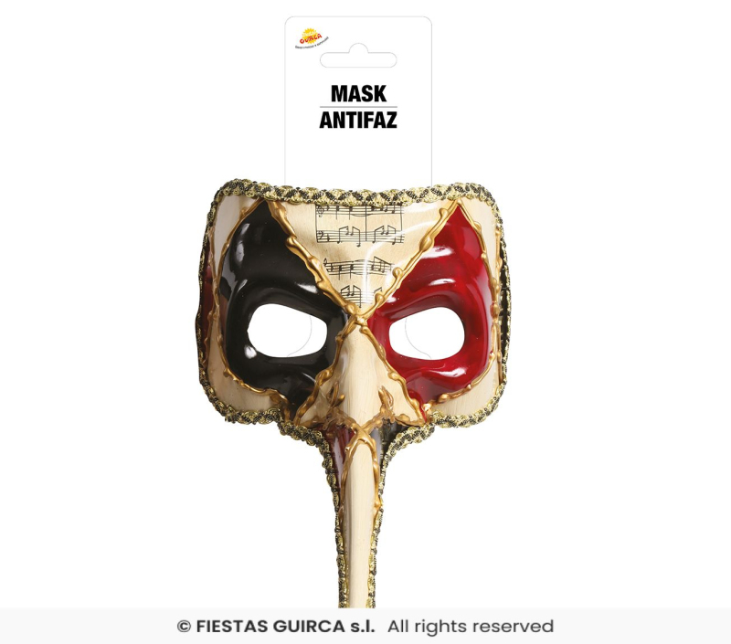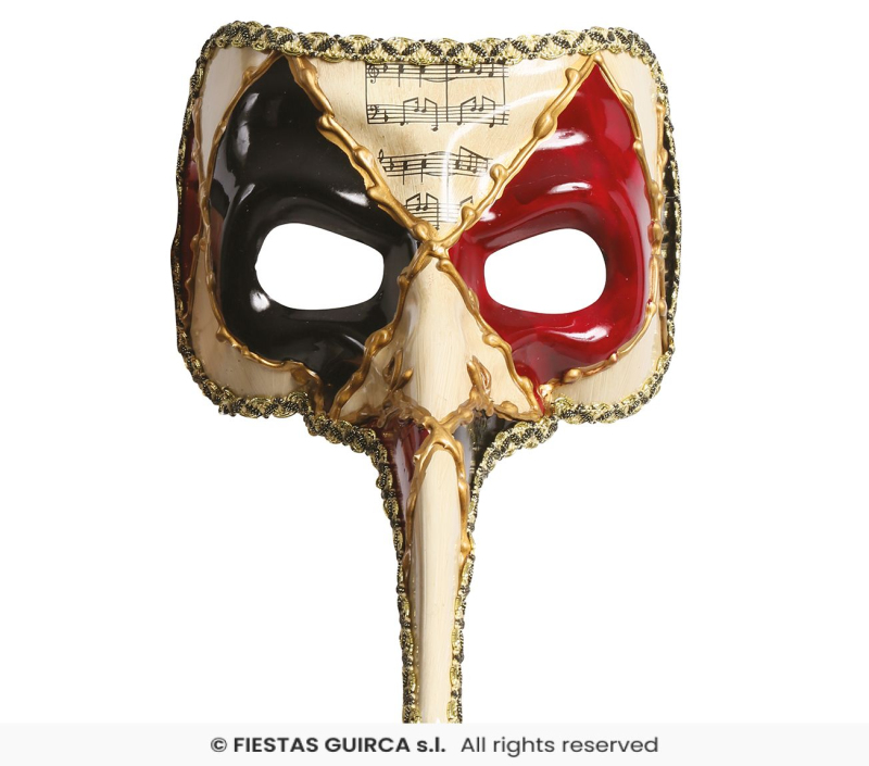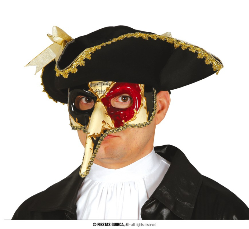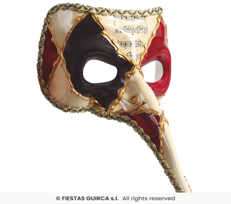 Krásná benátská maska s dlouhým špičatým nosem. Zobrazit více