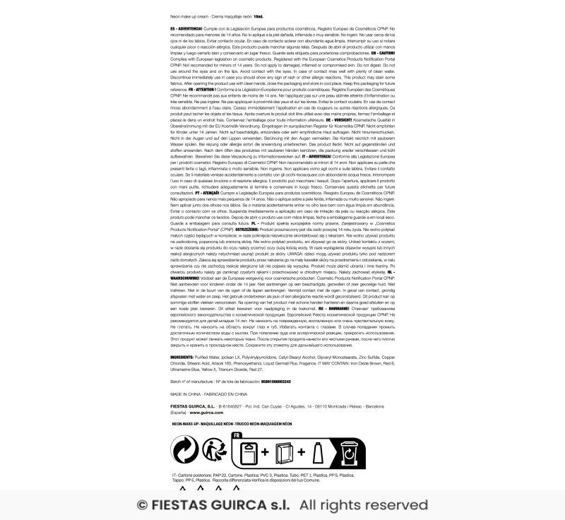 | Výrobce: | Výrobce: Fiestas Guica - Španělsko |