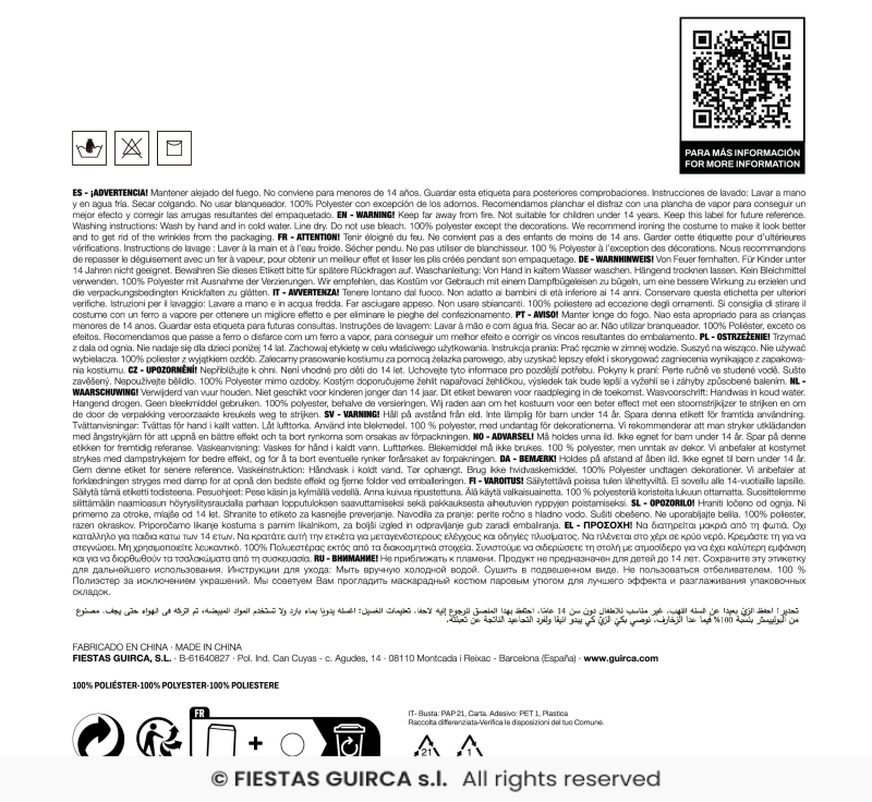 | Výrobce: | Výrobce: Fiestas Guica - Španělsko |