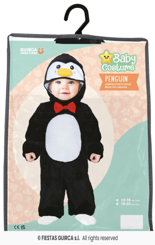 Kostým tučňáka obsahuje overal a kapuci. Zobrazit více